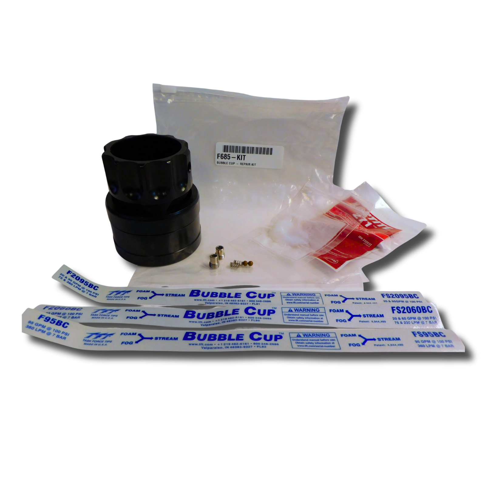 The F685-KIT repair kit is designed for F series BubbleCup nozzles.