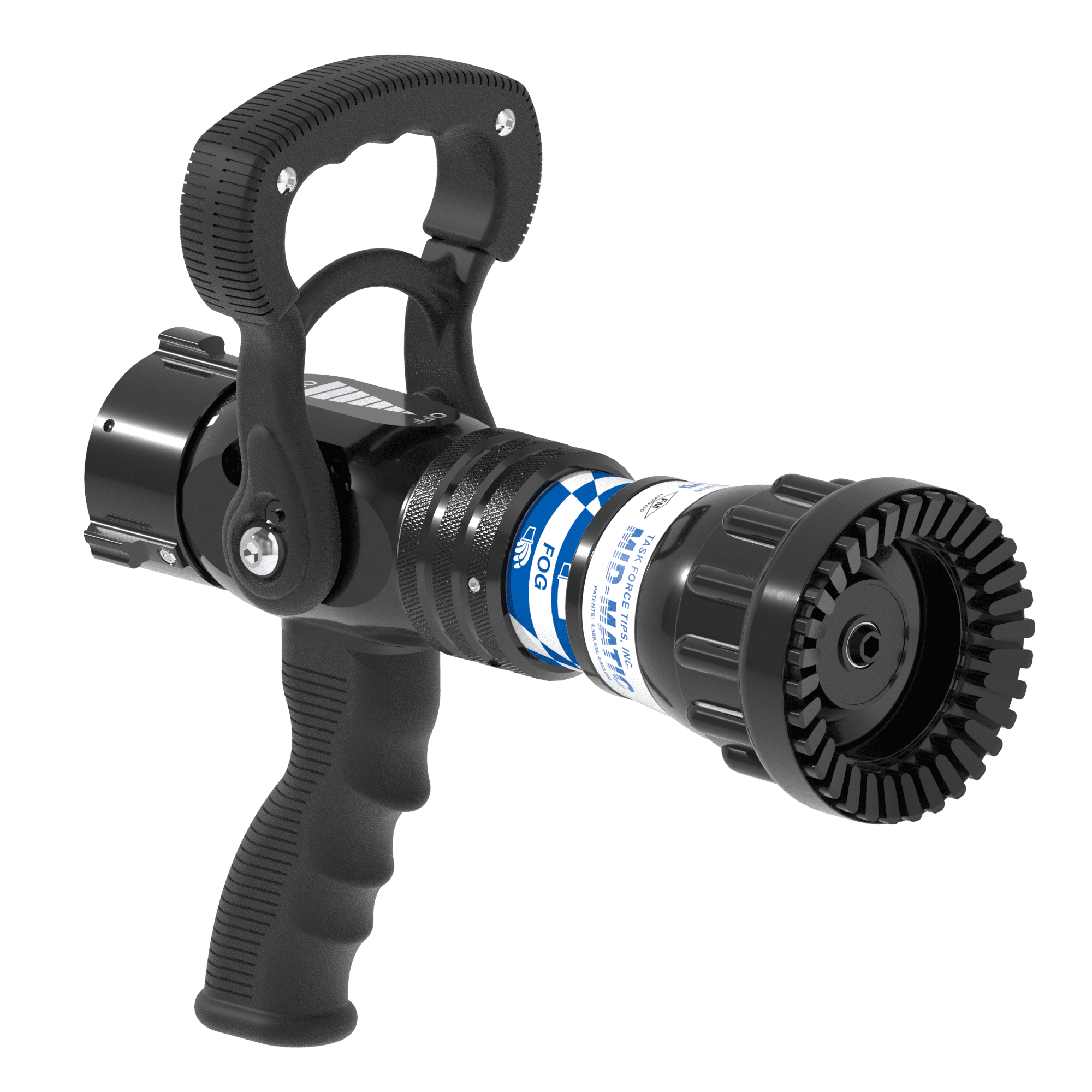 The Mid-Matic™ Automatic Nozzle is designed for firefighting teams requiring mid-range flow and flexible pressure options. Delivering between 25-200 GPM (100-750 LPM), the Mid-Matic™ provides efficient water application with easy customization. Built to meet NFPA standards, it features a patented slide valve, detent flow control, and is available with various grip and coupling options for enhanced handling on the fireground.